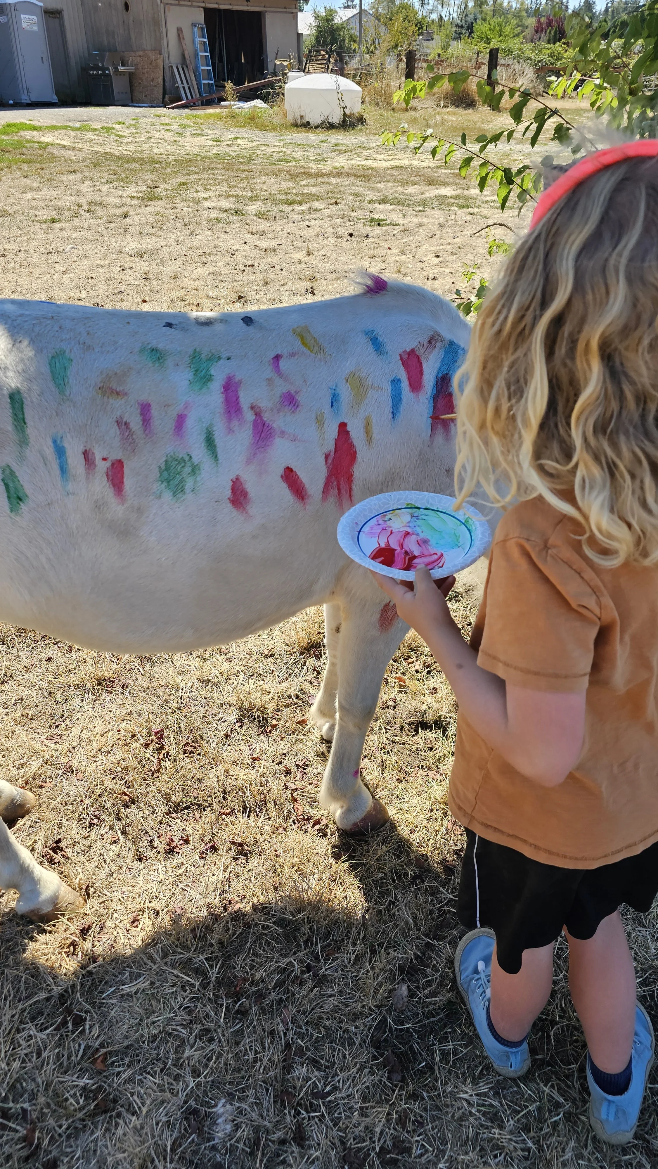 Daily camp activities include basic horsemanship such as groundwork, grooming, tacking and untacking, riding, and keeping human and horse bodies safe around one another. Campers also participate in basic equine management such as feeding, sweeping, and cleaning a stall. Campers will also take nature walks, participate in craft time, and have some unstructured rest/play time. We also try to bring in outside presenters to expand our curriculum; these vary depending on availability.